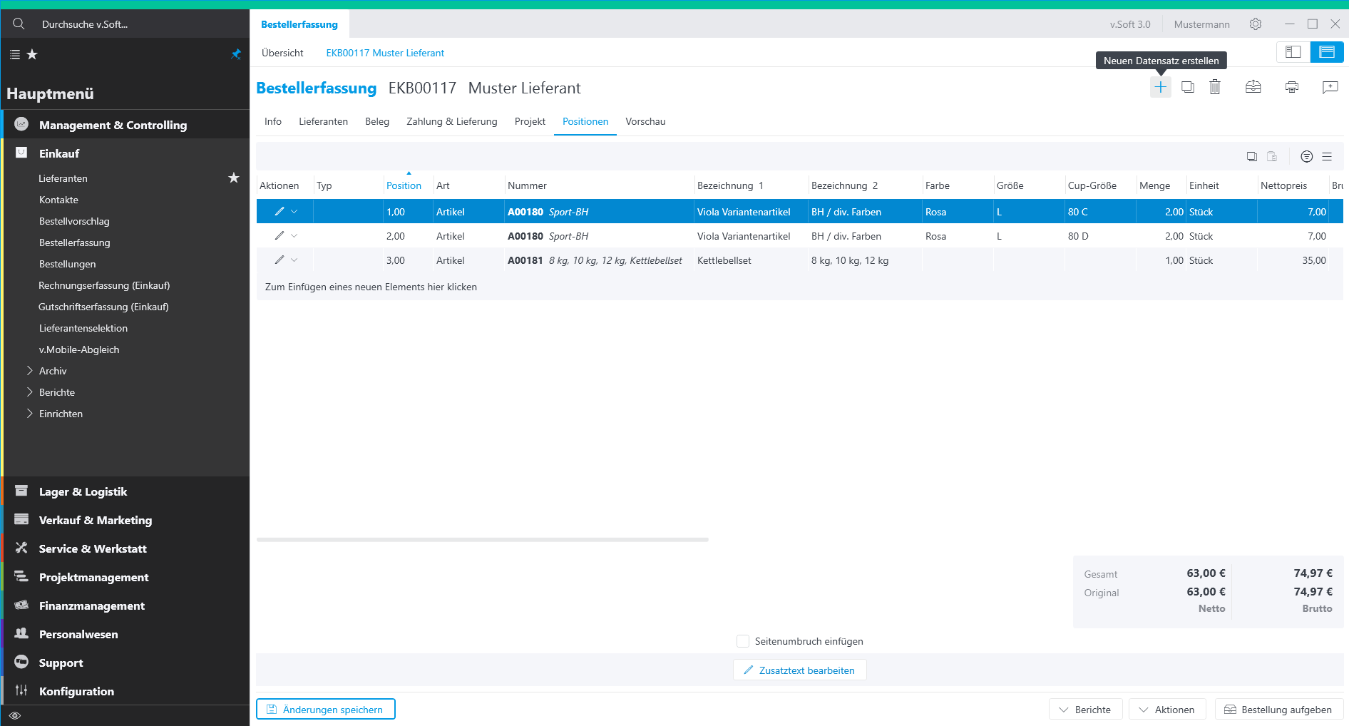 - Über „Rechnungserfassung (Einkauf)“ können Rechnungen auch unabhängig von einer Bestellerfassung angelegt werden.