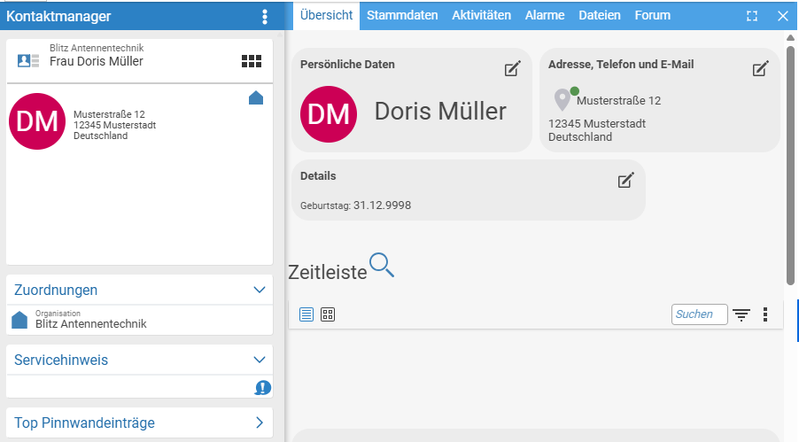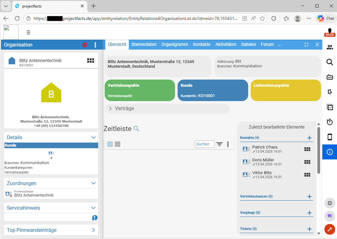 - Die übertragene Organisation wird zusätzlich nochmal als Kontakt in projectfacts angelegt.